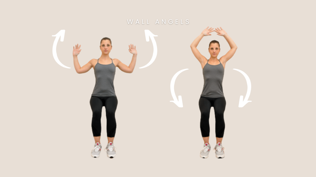 HOW TO : Make an “L” with your body by sitting tall against a wall. Press your entire back (even your natural arch) into the wall and extend your legs in front of you. Bring your elbows out to the side, level with your shoulders. Press your triceps against the wall. Rotate your arms upward so your forearms and the backs of your hands also press into the wall. Your arms should mimic the shape of a football goal post. Slowly raise your arms above your head, continuing until your shoulders and elbows fully extend. The whole time, continue pressing your back into the wall—avoid arching and try not to lose contact with the wall. Lower your arms back down until your triceps are parallel to the ground.