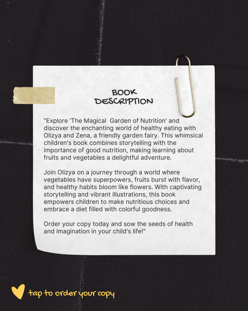 Don’t miss the chance to bring the magic of good nutrition into your child’s life. Order your copy of “The Magical Garden of Nutrition” now and watch as your little one embark on a journey of discovery, imagination, and healthy living!